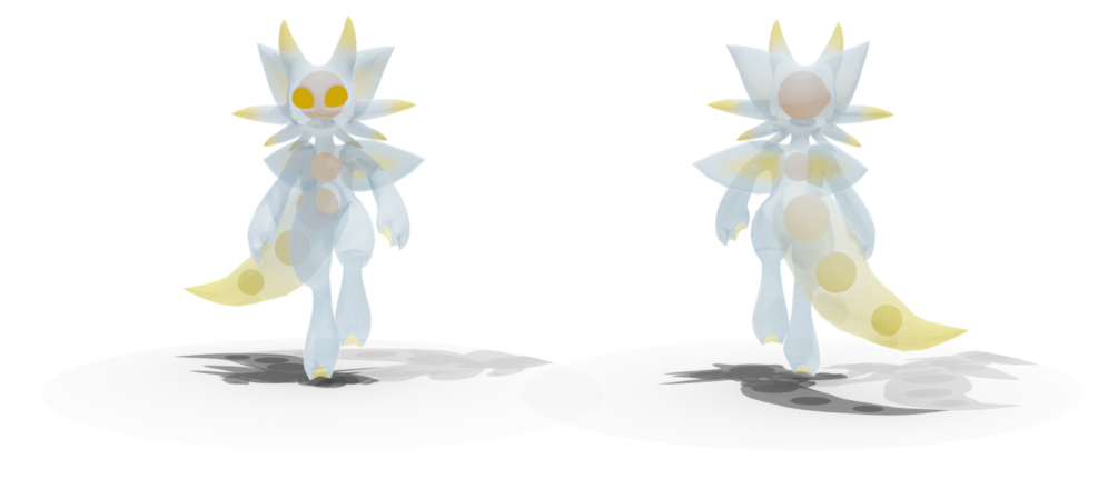 - Dynamic bones on ears, tail, and frills, colliders on floor
